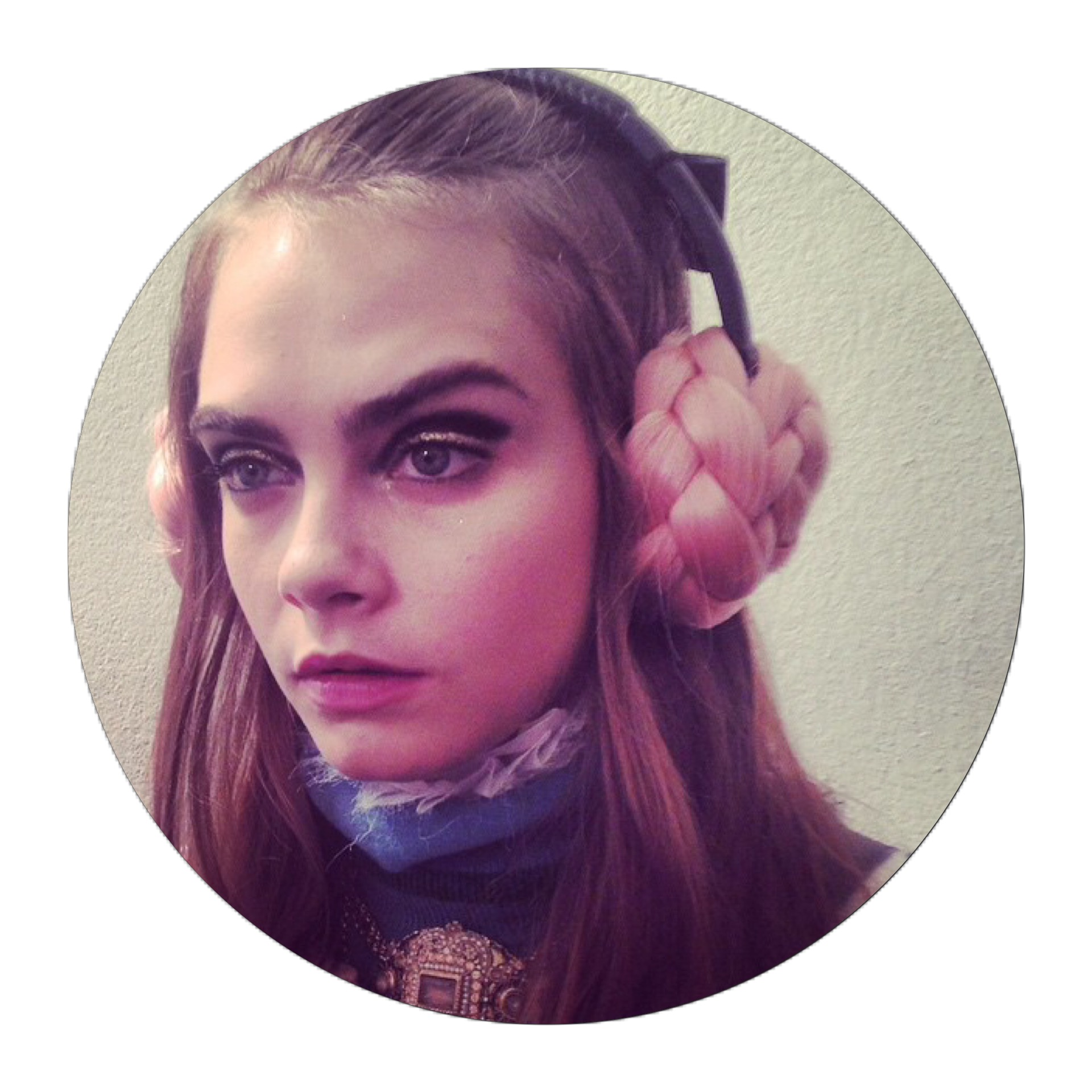 Hair was inspired by a modern Empress Sissi (like Cara Delevingne in Lagerfeld’s latest video Reincarnation) combining the luxury of the late 19th-century with a bit of glamour of the Seventies and the ease of our days. At the head of the team, Sam McKnight created lightly tousled hair pulled into half-up ‘dos and fastened with a Chanel accessory: some models wore a precious jeweled barrette, some a satin bow and others customized headphones. Called by McKnight "braidphones", these accessories were designed with real hair - blond, black and pink - and reinterpret the Germanic-style braids in a forward-thinking way, making them a must-have for winter.