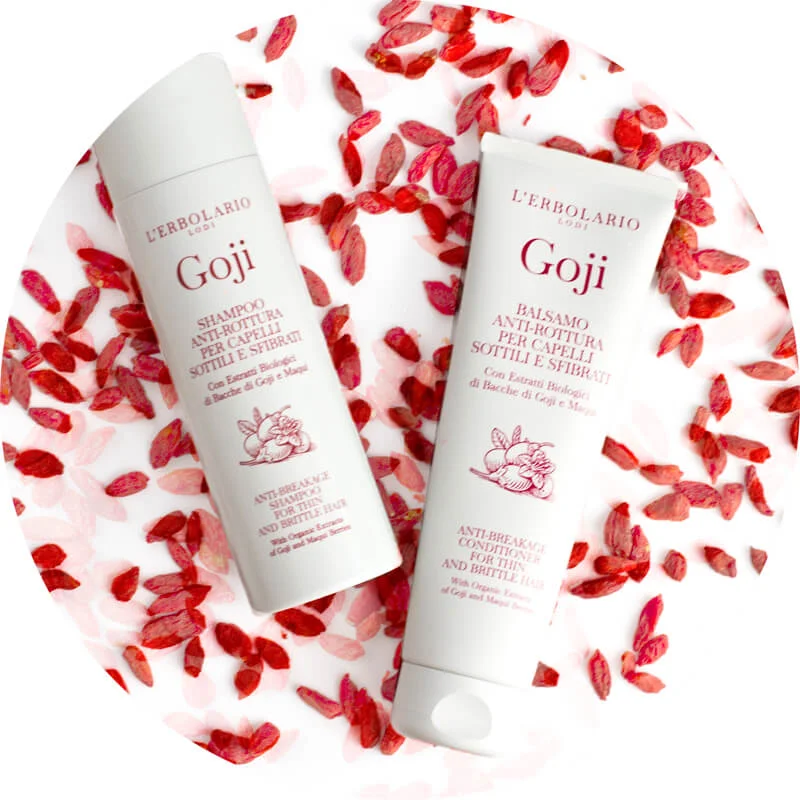 No doubts, Goji berries have been one of the best discoveries of the past years. Not only they are considered a super food but their benefits lend themselves to be used in beauty products, too. A goji-based face cream? Extremely anti-oxidant. A perfume? Invigorating. And what about the hair? A wonderful surprise. L’Erbolario - that around Goji berries has created a unique range - has given life to a shampoo and a conditioner (anti-breakage for thin and brittle hair) that, other than being ultra delicate and extremely performing, fortify, soften and make the hair shinier. All of that thanks to the combination of Goji Berries with the extract of Maqui Berries - which protects the hair and the keratin integrity - and a unique plant complex that acts to retain moisture, giving greater resistance, strength and hydration.