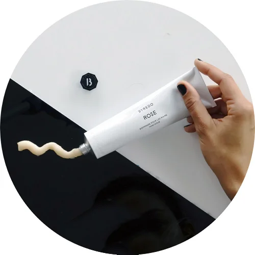Byredo Hand Scrub in Rose immediately opens with a radiant and positive combination of pink pepper and raspberry that leave the way to the sophisticated rose aura enriched by a base of patchouli and musk.