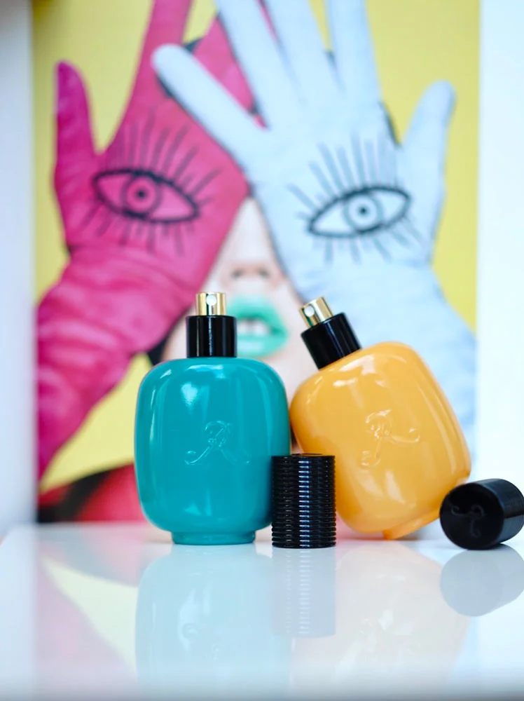 The color is to the rose what the rose is to an olfactory family. Fuchsia, ocher yellow, green and turquoise blue: Le Parfum de Rosine renews its image in the name of color thanks to the collaboration between Marie-Hélène Rogeon and her son who, as an artist, thinks of colors as a starting point. From here, Madame selects roses that identify them one by one and, thanks to the expertise of world-famous noses, combines them with unconventional olfactory notes.
